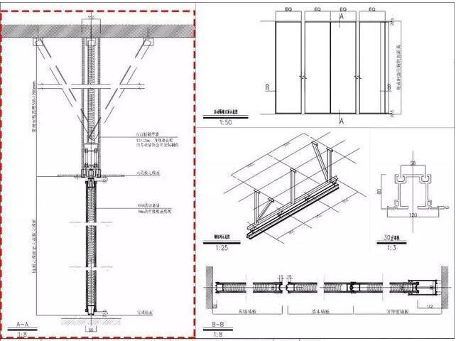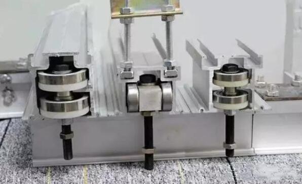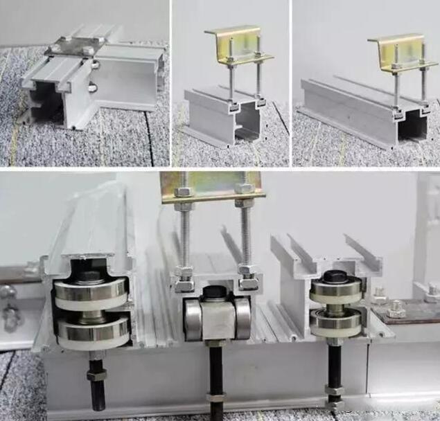 這種在宴會廳中經常看到的高隔斷可以實現移動和藏的功能原因主要是來自它頂部的導軌和靈活的組合形式,其基本的導軌構造如圖下所示: