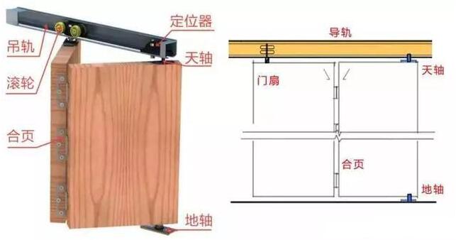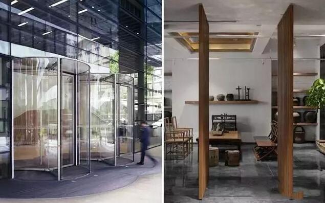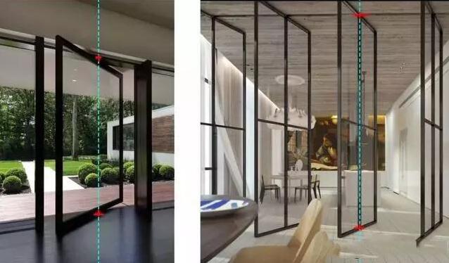 我們看了旋轉門所用到的天地軸,活動隔斷用到的滑軌和滾輪,那么如果將這兩種五金構造加上門扇合頁組合在一起會是什么效果呢?